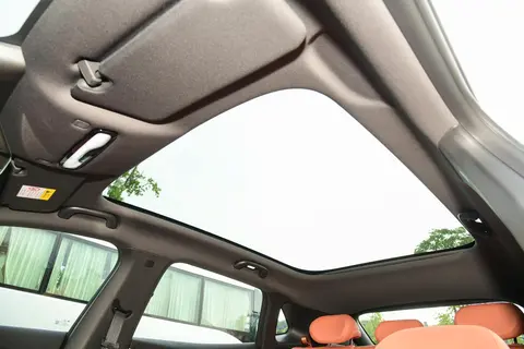 细节上,无框车门让侧面看起来更简洁,电动隐藏式门把手在解锁时会自动弹出,很有仪式感,同时也能降低风阻。1.9㎡的超大全景天幕,让车内采光很好,夏天可以用电动遮阳帘遮挡阳光。