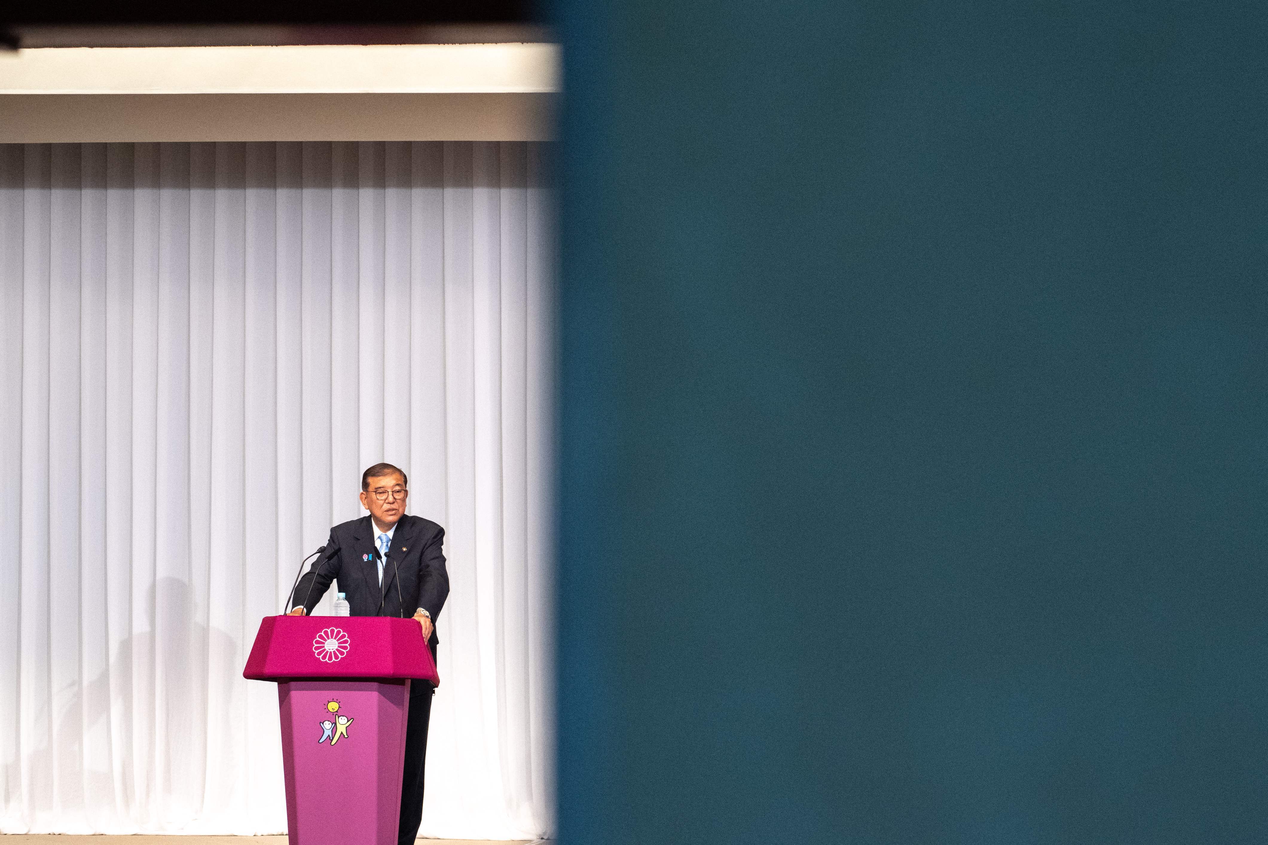 7月20日,在日本东京自民党总部,日本首相、自民党总裁石破茂会见记者。新华社发
