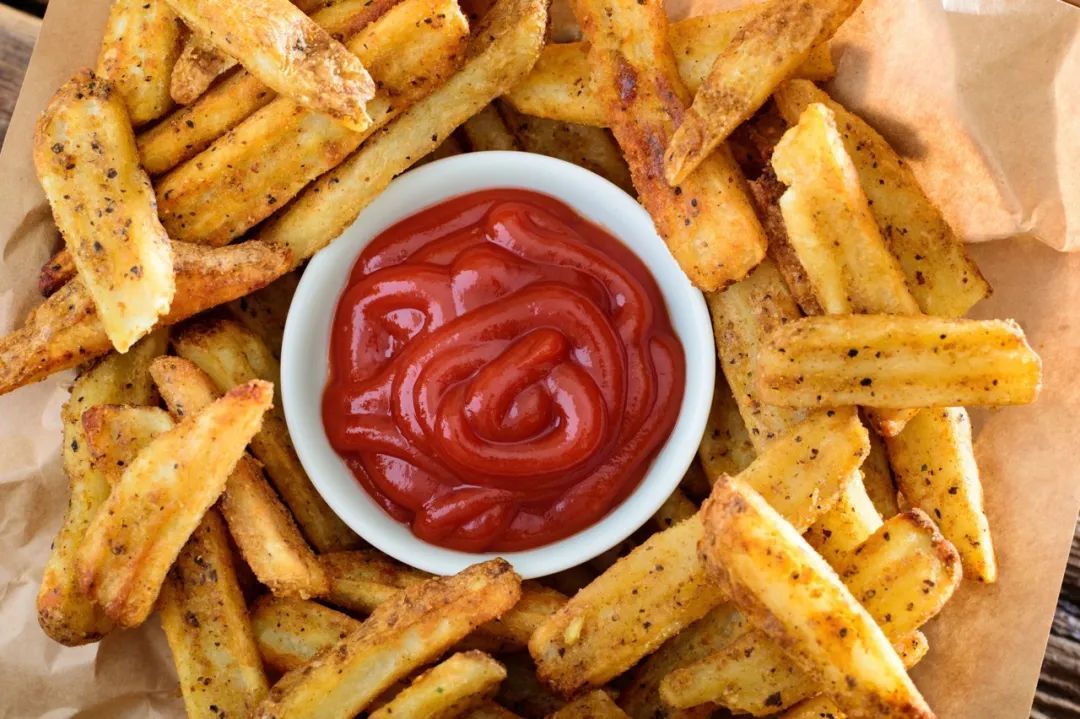 撒了辣椒盐的薯条配番茄酱丨图库版权图片,转载使用可能引发版权纠纷